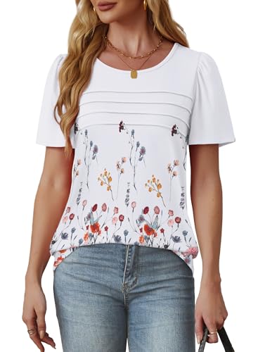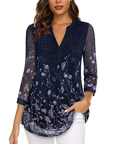 Timeson Womens Blouses and Tops Dressy Short Sleeve Plus Size Tunics for Women Floral V Neck Business Casual Tops Office Work Loose Fitted Spring Dressy Shirts Swing High Low Blouses Gray Blue XXL Price in USA