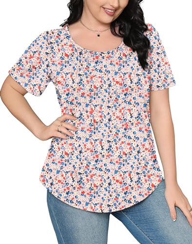 Timeson Womens Blouses and Tops Dressy Short Sleeve Plus Size Tunics for Women Floral V Neck Business Casual Tops Office Work Loose Fitted Spring Dressy Shirts Swing High Low Blouses Gray Blue XXL