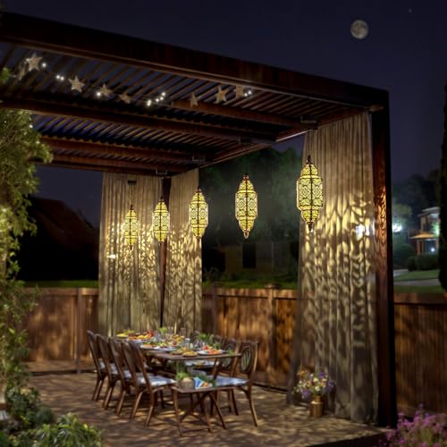 Solar Lanterns Outdoor Hanging Heart Pattern Decor Lantern Waterproof Hollow Out Metal Decorative Garden Light Graceful Decoration for Patio Yard Landscape Walkway Festival Price in USA
