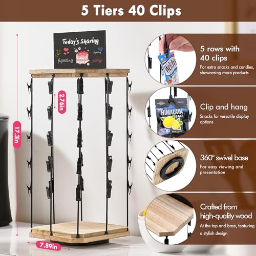 Pinzoveco Chip Rack Display Stand 5 Tiers 40 Clips Snack Org...