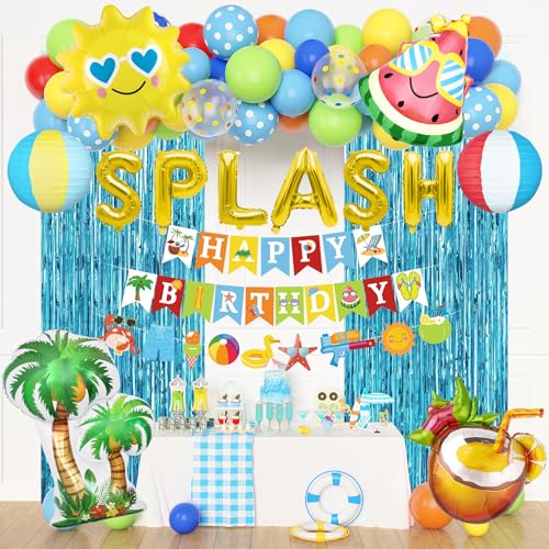 Package content: 1 x Rose gold ""HAPPY BIRTHDAY"" foil balloon banner (16 in) 15 x Metallic rose gold balloons(12in) 10 x Matte white latex balloons(12in) 5 x Rose gold confetti balloons(12in) 1 x Circle dots garland 12 x Butterfly decors 1 x Foil tablecloth(54in*72in) 6 x Hanging swirls 2 x Rose gold fringe curtains(3.28ft*6.5ft) 1 x Balloon ribbons (66ft)