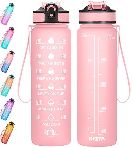 Hyeta 32 oz Water Bottles with Times to Drink and Straw Moti...