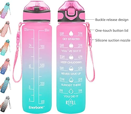 Enerbone Motivational Time Marked Water Bottle 32oz with Str...