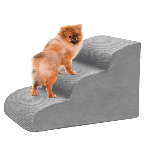 EHEYCIGA Curved Dog Stairs Ramp for Small Dogs 15.7\" H 3-Step Dog Steps for Couch Sofa and Chair Pet Stairs for Cats Non-Slip Balanced Pet Steps Indoor Grey