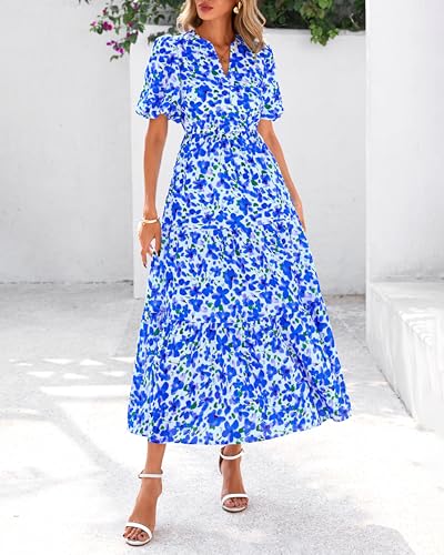 Keluummi Plus Size Wedding Guest Maxi Dress for Curvy Women Summer Formal Floral Long Wrap Cocktail Dress with 3/4 Sleeve(18 Plus 01 - Navy Blue Floral) Price in USA