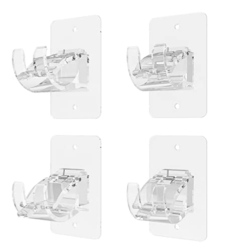 4 Pieces Self Adhesive Curtain Rod Bracket Universal Plastic Curtain Rod Holders No Drill Curtain Rod Brackets Curtain Rod Hooks for Bathroom Bedroom Livingroom Kitchen (Transparent) Price in USA