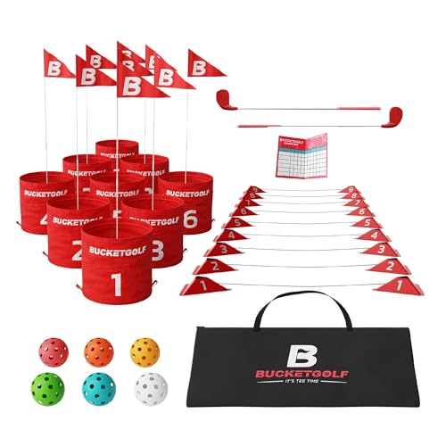bucketgolf Game 9 Hole Bundle with Clubs - Outdoor Golf Game...