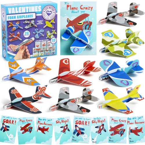 28Pcs Foam Airplanes With Kids Valentines Cards for Classroo...