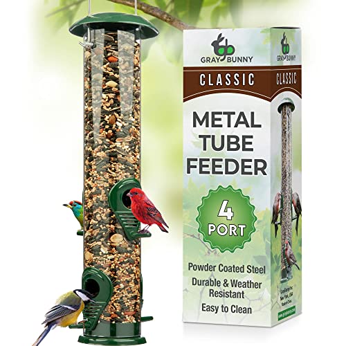 Gray Bunny Metal Hanging Bird Feeder Tube 4-Port 1-Pack Hang...