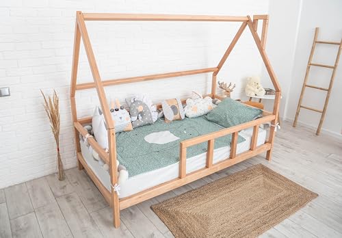 BUSYWOOD Toddler Floor Bed - Bed Rail for Toddlers - Montessori Bed Rail - Wooden Kid Bed - Montessori Fence Play Area - Montessori Platform Bed Frame (Model 17)