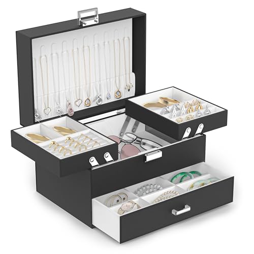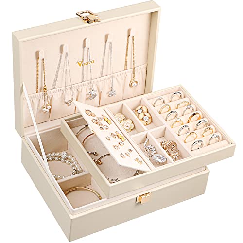 SONGMICS 2-Layer Jewelry Box Jewelry Organizer with Handle Removable Jewelry Tray Jewelry Storage Floating Effect 8.1 x 9.4 x 4.3 Inches Christmas Gift White UJBC165W01 Price in USA