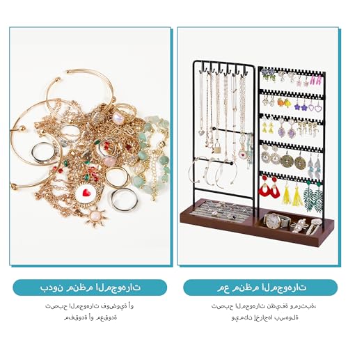 Features That Make This Jewelry Box Stand Out: - Elegant design: The unique combination of white and gold a stylish metal handle and a distinctive ""floating"" base create a truly sophisticated appearance. - Abundant storage: Multiple compartments provide ample space to neatly organize and categorize your accessories. - User-friendly top tray: Designed with side handles it can be easily removed and utilized separately from the jewelry box. - Adaptable stud earring organizers: They can be used within the jewelry box or taken out for separate use. - Removable partitions: With these you can store jewelry of all different sizes. - 8 necklace hooks: Generous vertical space allows you to hang your long necklaces without tangles. - Soft velvet lining: Protective lining ensures your precious jewelry remains safe from scratches and damage. Specifications: - Color: White - Material: MDF (Medium Density Fiberboard) Paper Velvet - Pro