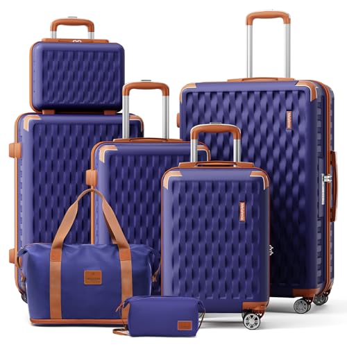 LONG VACATION Luggage Set 4 Piece Luggage ABS hardshell TSA Lock Spinner Wheels Luggage Carry on Suitcase (WHITE-BROWN 6 piece set) Price in USA