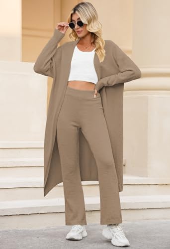 Women's Two Piece Outfits Knit Sweater Pullover Crop Top & Pants Lounge Matching Tracksuit Sweatsuit Sets