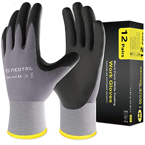 NEOTRIL Safety Work Gloves MicroFoam Nitrile Coated-12 Pairs...