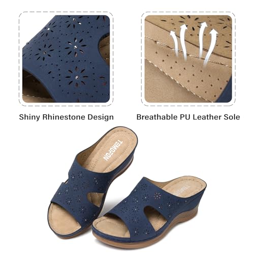 TEMOFON Women Wedge Sandals Dressy: Navy Blue Low Heels Plat...