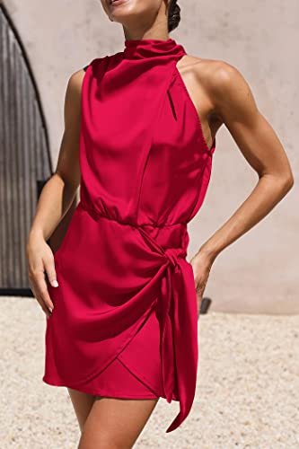Wenrine Womens Summer Backless Mini Dress Tie Back Casual Sl...