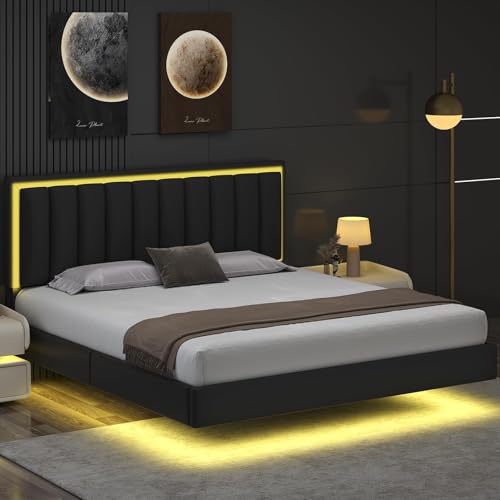 HOWE King Size Bed Frame and 65"" Headboard Upholstered Bed with Golden Plating Trim Modern Platform Bed No Box Spring Needed Black Price in USA