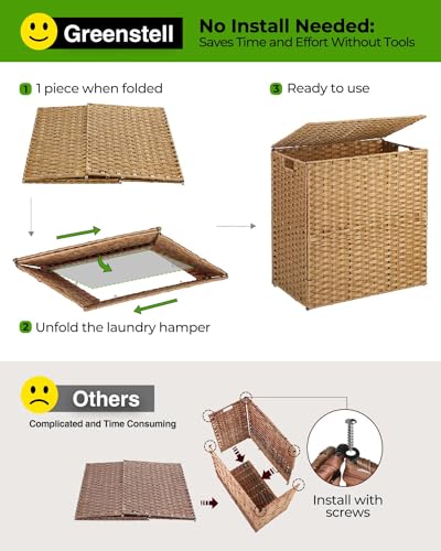 GREENSTELL Laundry Hamper with lid No Install Needed 110L Wi...