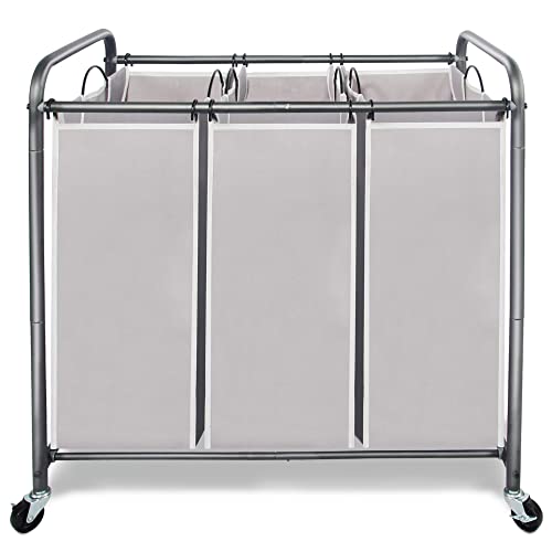 STORAGE MANIAC Laundry Sorter 3 Section with Rolling Lockabl...