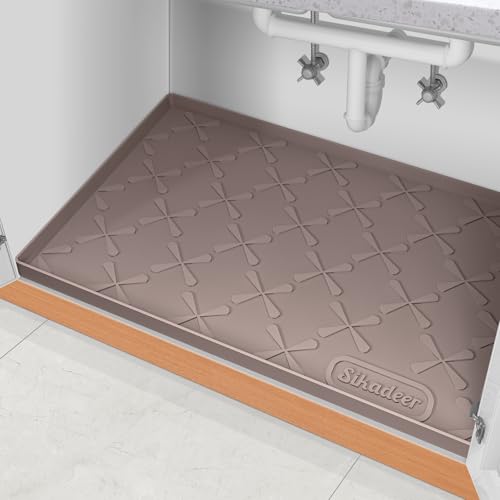 SIKADEER Under Sink Mat for Kitchen Waterproof 37\" x 22\" Silicone Cabinet Liner Mat for Bathroom Under Sink Organizer with Raised Edge Protector for Drips Leaks Spills Tray Price in USA