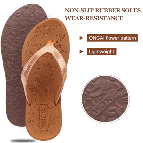 ONCAI Flip Flops For Women Yoga Mat Non-Slip Womens Flip Flops Sandals Summer Beach Slippers With Arch Support Slip On Lightweight EVA Sole White/Khaki Size 6.5