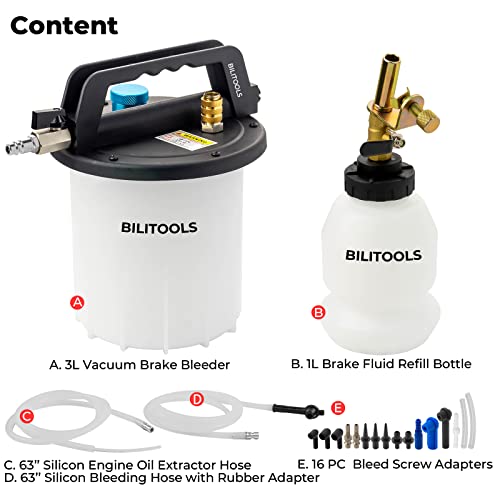 BILITOOLS 3L Vacuum Brake Bleeder Kit One Person Pneumatic B...