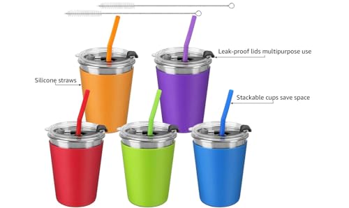 5Pack Kids Cups with Straws and Lids Spill Proof 12oz Toddle...