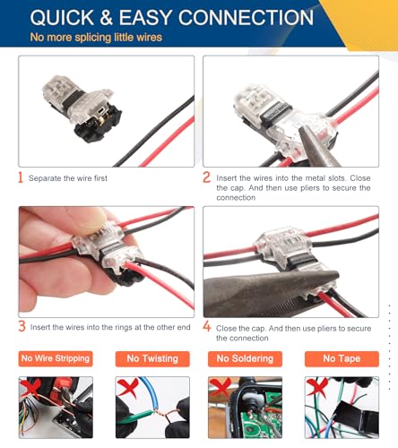 FEATURES No need to strip insulation before connection. No need to twist nor tape the conductor. Conductor of wire is not exposed during connection. Made of flame retardant material. Easy to use & time saving. SPECIFICATIONS Material: Polycarbonate Rated Voltage: 300V Rated Current: 9A Minimum Cross Sectional Area: 0.34 - 0.75 mm² Workable Wire Type: Solid wire/Strand wire 22-18# AWG High-precision copper(Cu) Normal Working TEMP: -20 -+40 degC Flame Retardant Level: UL94v-0 PACKAGE INCLUDED 20 x Wire Cable Snap Plug In Connector or 50 x Wire Cable Snap Plug In Connector NOTES Please allow slight measurement deviations due to manual measurement. Due to the different monitor and light effect the actual color of the item