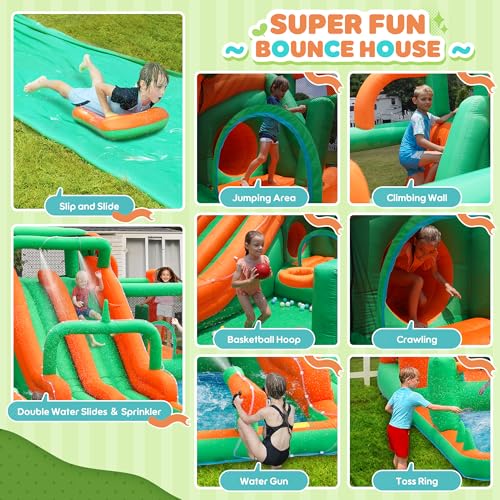 Whubefy Water Slide 7 in 1 Inflatable Water Slides for Kids with Blower Water Bounce House Water Park for Kids Backyard Waterslide Splash Pool Water Gun Climbing Wall Bouncy House for Wet and Dry