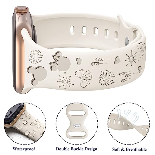 4 Pack Slim Lace Slicone Apple Watch Bands Compatible with Apple Watch Bands 38mm 40mm 41mm 42mm 44mm 45mm 46mm 49mm for Women Ladies Girls. Sport Silicone Bands Compatible Model: Thin cute apple watch band women ●Apple Watch Series 10 /SE 3 (2024) ● Apple Watch Series 9 / Apple Watch Ultra 2 (2023) ●Apple Watch Series 8 / Apple Watch Ultra (2022) ●Apple Watch Series 7 (2021) ● Apple Watch Series SE (2020) ● Apple Watch Series 6 (2020) ● Apple Watch Series 5 (2019) ● Apple Watch Series 4 (2018) ● Apple Watch Series 3 (2017) ● Apple Watch Series 2 (2016) ● Apple Watch Series 1 (2015) Free Size for All Wrists: 38mm/40mm/41mm iwatch bands size fits 5.1""-7.1"" (130mm-180mm) wrist also works for 40mm/41mm. 42mm/44mm/45mm/49mm iwatch bands size fits 5.9""-7.9"" (150mm-200mm) wrist also works for 44mm/45mm/49mm. Unmissable - for Ap