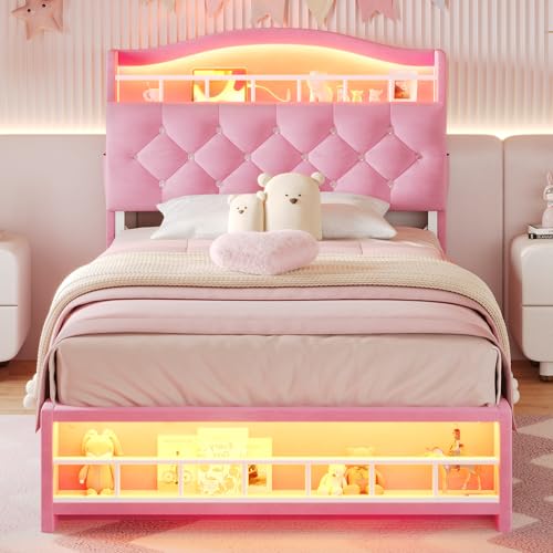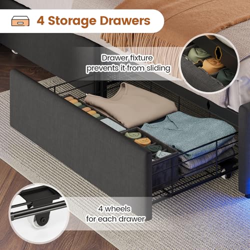 BTHFST Queen Bed Frame with Outlets and USB Ports LED Bed Frame Queen Size with Storage Headboard Upholstered Platform Bed with Shelf and LED Lights No Box Spring Needed Dark Grey (BWL) Price in USA