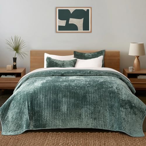 EVERGRACE velvet quilt is an ideal addition to glitz up your bedroom boasting an inviting sheen that varies in shades of color depending on the angle and lighting. Wrap yourself in the sumptuous splendor of our jaw-dropping crushed quilt set adorned with an enchanting wave pattern. Its mesmerizing high-shine finish and irresistibly soft touch transport you to a realm of unrivaled opulence. Plush velvet quilt amazingly soft and skin-friendly. Lightweight oversized comforter breathable and comfy.
