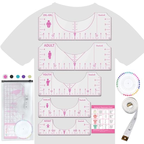 Vowlove Tshirt Ruler Guide Vinyl Alignment Tool - Sublimation Accessories T Shirt rulers to Center Designs Transparent V-Neck/Round PVC Ruler for Adult Youth Toddler Infant 2XL-6XL 01 Pink Price in USA