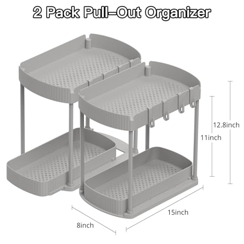 ukeetap 2 Pack Under Sink Organizer 12.8 Inch Grey