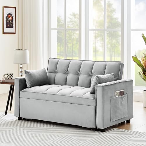 Upgrade your living room space with the THSUPER 104'' Sectional Sleeper Sofa. This versatile L-shaped couch comes with a pull-out bed and a storage chaise lounge to complement your home decor while the adjustable headrest provides maximum comfort and support. The microfiber upholstery adds durability and a soft touch to this stylish sofa set. With its generous size and ample seating this modern sectional sofa is perfect for entertaining family and friends. The attached ottoman makes it easy to stretch your legs and relax while watching TV or reading a book. And when you need an extra bed for guests simply pull out the sleeping area for a comfortable night's sleep. The THSUPER 104'' Sectional Sleeper Sofa is not only practical but also stylish featuring clean lines and a contemporary design. The neutral color options make it easy to blend in with any existing decor while the silver nailhead trim adds a touch of sophistication. Invest in a quality sectional sofa that will transform