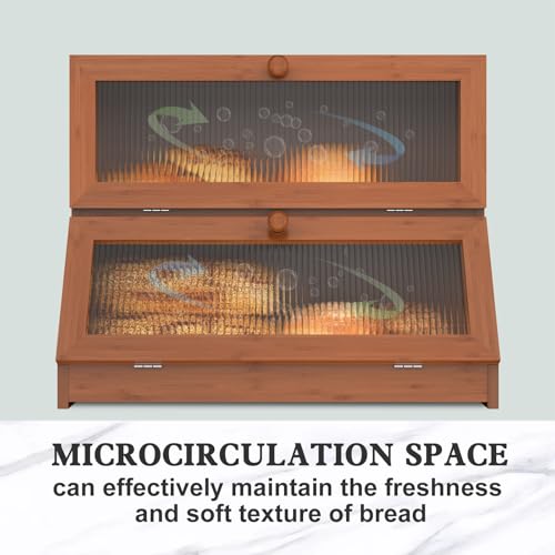 LOHASOK Double Layer Bamboo Bread Box for Kitchen Counter-La...