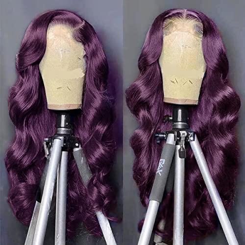 Deep Purple 13x4 Body Wave Lace Front Wigs Human Hair 150% Density Dark Burgundy Body Wave Wigs for Women HD Transparent Lace Front Wigs Human Hair beginner friendly