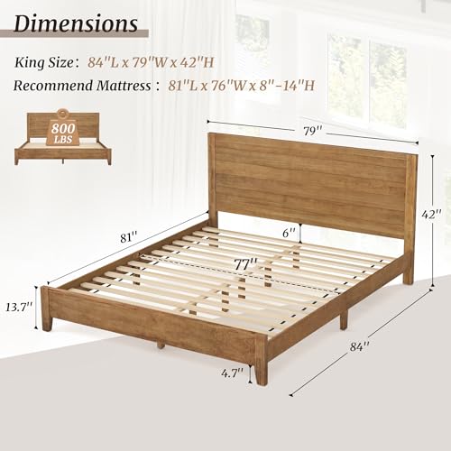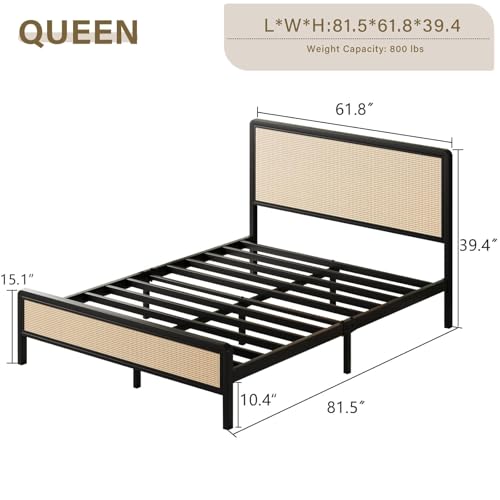 Brafab Natural Rattan Queen Bed Frame with Wooden Headboard and 4 Storage Drawers Boho Cane Bed Metal Platform Bed with Strong Wooden Slat Noise Free No Box Spring Needed