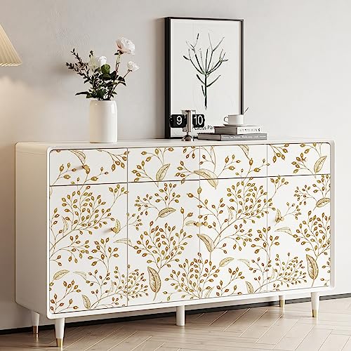Heroad Peel and Stick Wallpaper 196\" x 17.3\" White Contact Paper Gold Floral Wall Paper Modern Boho Removable Contact Paper for Cabinets Drawers Bedroom Self Adhesive Vinyl Papel Tapiz para Pared