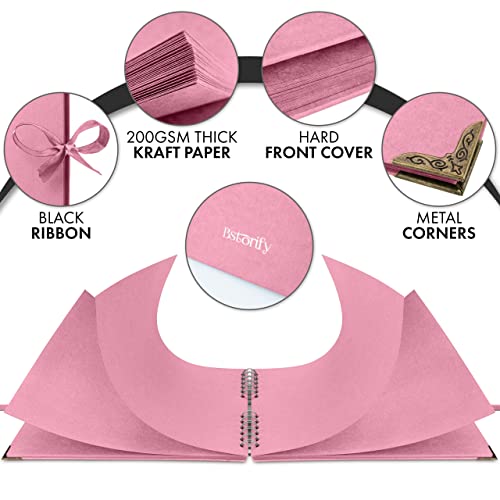 Bstorify Square Scrapbook Photo Albums 50 Pages (28 x 22 Cm) Pink Thick Paper Hardcover Ribbon Closure - Ideal for Your Scrapbooking Albums Art & Craft Projects (Pink 28 x 22 Cm)