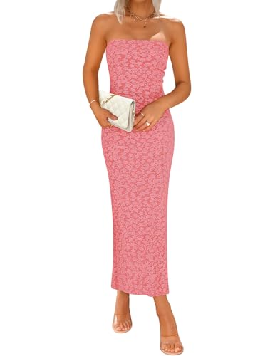 ZESICA Women's 2025 Summer Boho Floral Strapless Bodycon Dre...