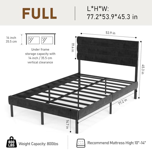 RVONOW Full Bed Frame with Linen Upholstered Headboard Metal...