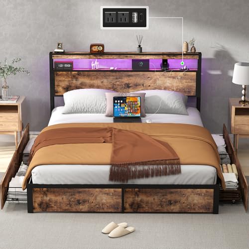 LIKIMIO Queen Bed Frame Storage Headboard with Charging Station Platform Bed with Drawers No Box Spring Needed Easy Assembly Vintage Brown and Gray Price in USA