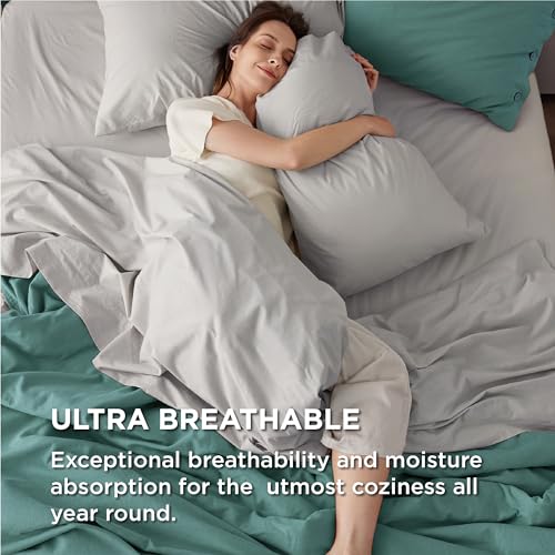 Bedsure 100% Cotton Sheets Full Size - Soft Percale Sheets 4 Pieces Grey Sheet Set Breathable Cooling Full Sheets Cotton Bed Sheets with Deep Pocket Up to 16\" Bedding Sheets & Pillowcases