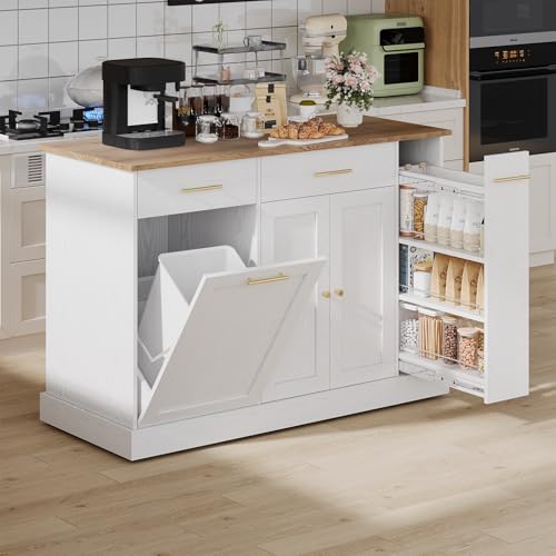 VEVOR Kitchen Island Cart with Solid Wood Top 35.4"" Width Mobile Carts with Storage Cabinet Rolling Kitchen Table with Spice Rack Towel Rack and Drawer Portable Islands on Wheels White Price in USA