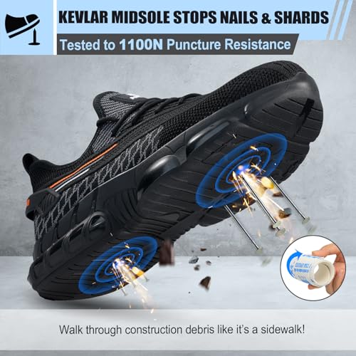 BAIYIJIA Steel Toe Shoes for Men No Slip Work Shoes Air Cushion Construction Industrial Shoes Safety Shoes Lightweight Steel Toe Sneakers for Men Women Black Size 9.5