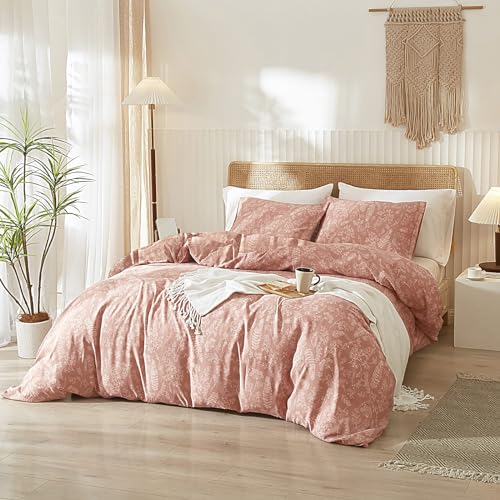 Product Overview: The mixinni King Duvet Cover Set is a beautiful addition to any bedroom, offering a touch of elegance and sophistication with its botanical printed pink flower leaves design. As part of the HOME > BED LINEN SET category, this product from mixinni is designed for couples who value comfort, style, and practicality. Whether you're looking to refresh your bedroom decor or simply want a cozy bedding set, this 3-piece king size duvet cover set is an excellent choice.