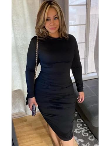 BEAGIMEG Women's Ruched Long Sleeve Elegant Bodycon Basic Ca...