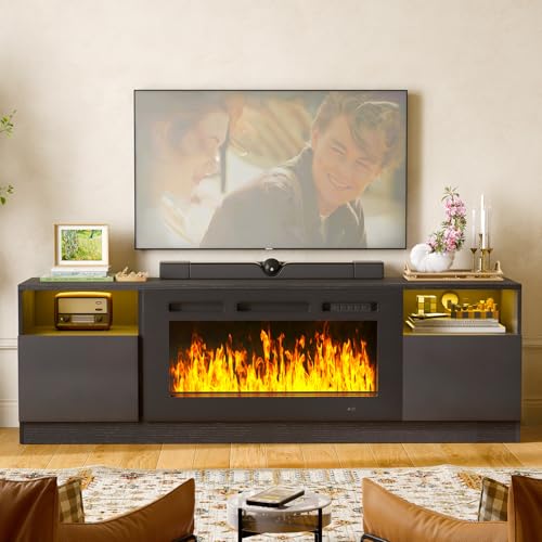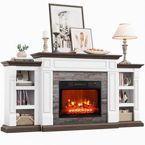 LEMBERI 58 Inches Fireplace TV Stand for TVs up to 65 Inches Console with 18'' Electric Fireplace & Remote Wooden Modern Entertainment Center for Living Room with LED Light Glass Shelves (White) Price in USA